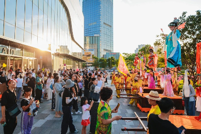 番禺天河城深耕非遗传播,推出“飘色+鳌鱼舞”巡游及金箔画、面塑等非遗沙龙,让市民近距离感受传统技艺魅力。“飘色+鳌鱼舞”巡游一登场即引起全场热潮,游客紧随巡游队伍,纷纷举起手机记录精彩瞬间。